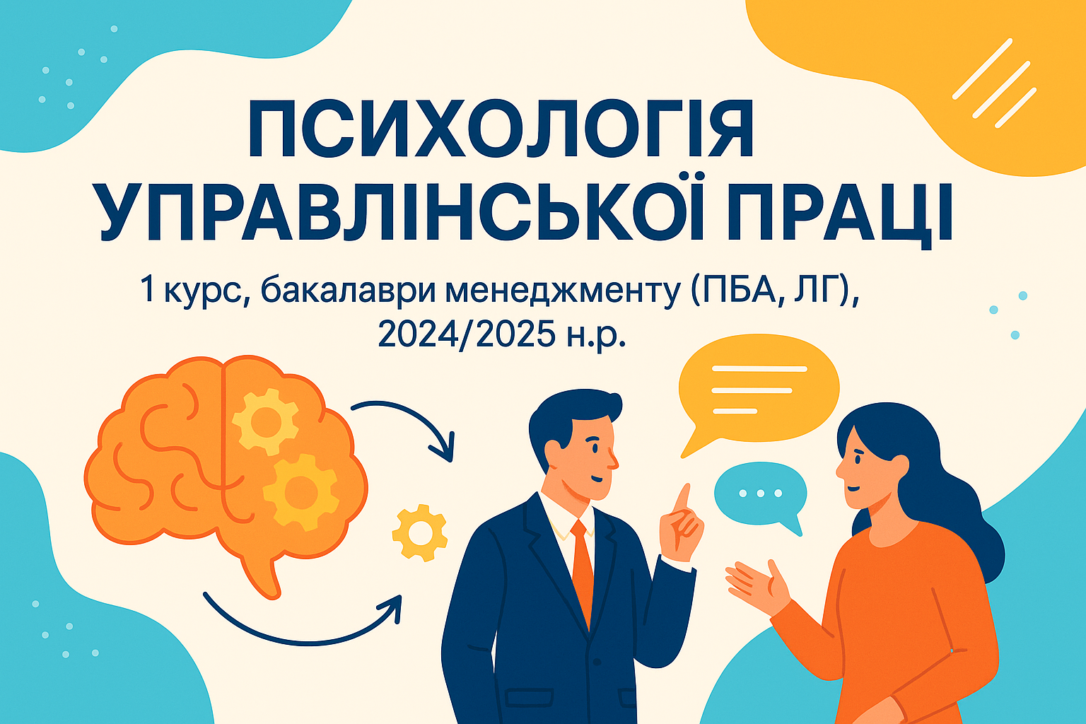 Під час вивчення дисципліни студенти ознайомлюються з ключовими поняттями управлінської психології, механізмами мотивації, комунікації, прийняття рішень і лідерства, а також з методами психологічного впливу та профілактики професійного вигорання.